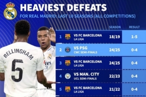 开云APP-德转列皇马近10年惨败:5次净输巴萨至少3球,曼城巴黎阿森纳在列